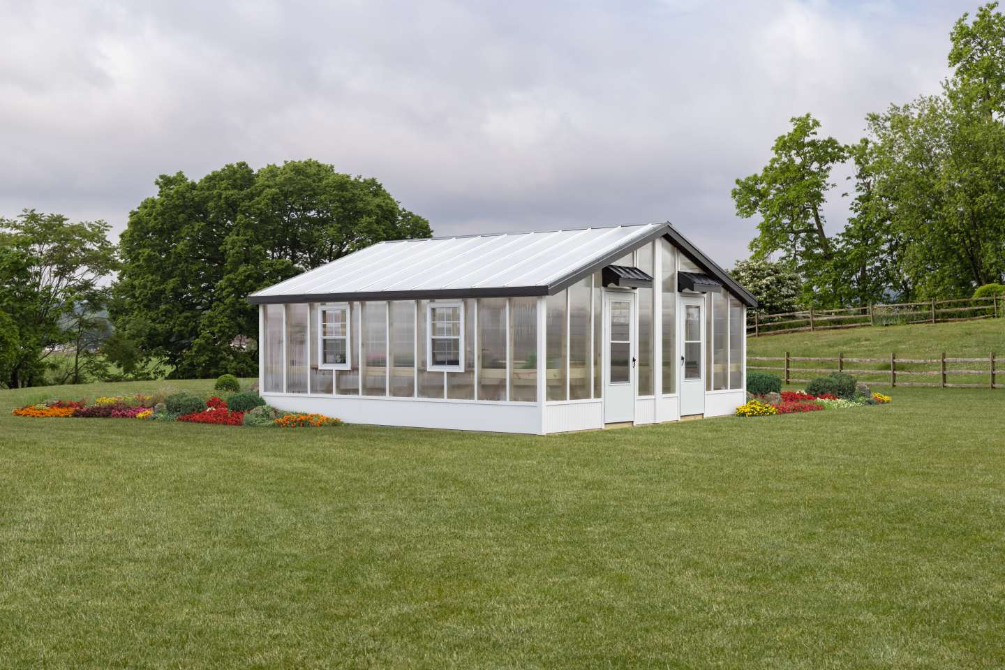 Grow your gardening enterprise in an instant with this huge double wide greenhouse option. The 24” potting shelf invites the keen gardener to propagate masses of plants through the season with its bountiful square footage. Wide open interior space can accommodate a potting bench of your own creation or space to place taller plant stock.